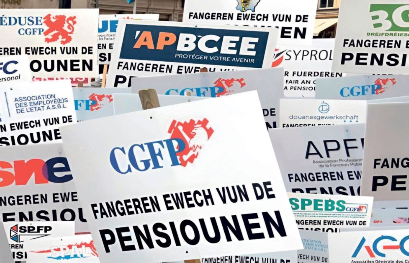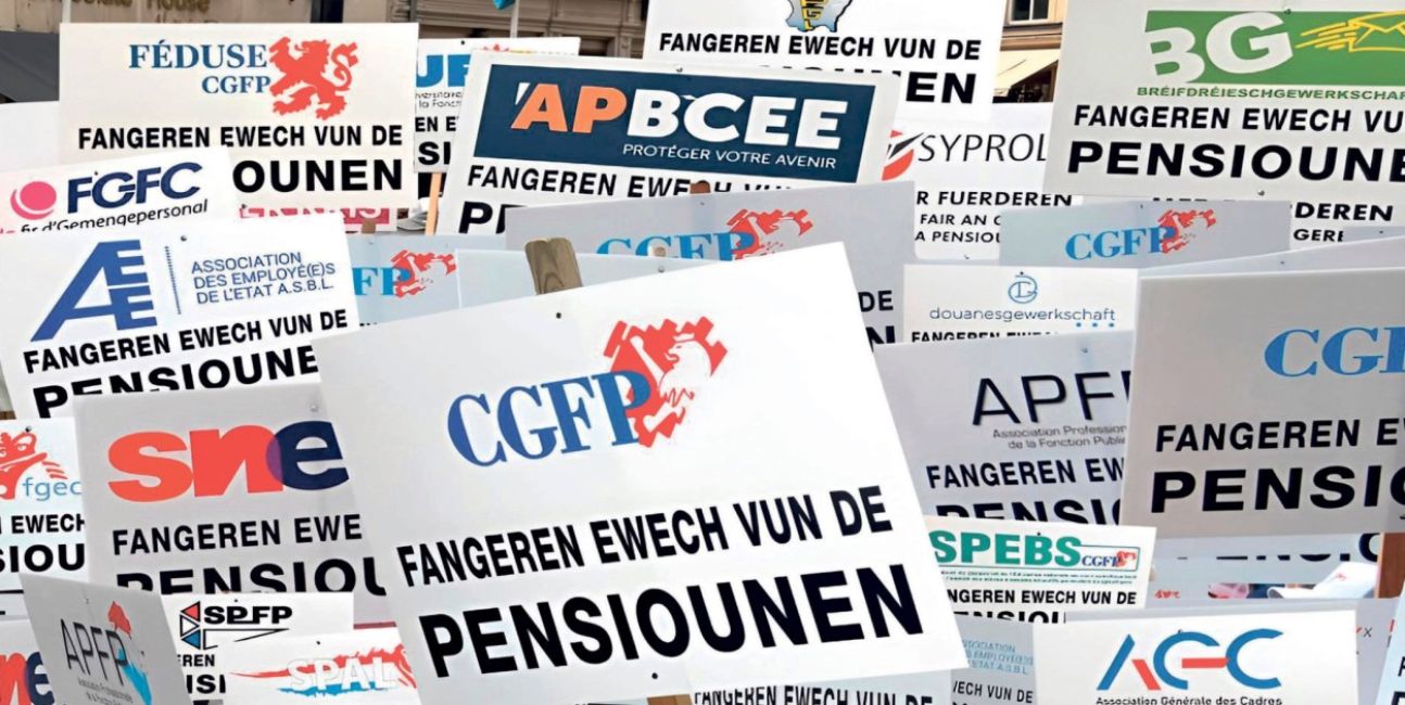 Um die 500 Delegierte, allen voran Vorstandsmitglieder der CGFP-Fachverbände, des CGFP-Kooperationspartners FGFC und der Eisenbahnergewerkschaft SYPROLUX, hatten sich an diesem 25. Juni vor der Abgeordnetenkammer versammelt, um mit Blick auf die angekündigte Rentenreform ihrem Unmut Ausdruck zu verleihen und die CSV-DP-Koalition zu einem Umdenken zu bewegen. Der Austragungsort vor dem Abgeordnetenhaus war nicht zufällig gewählt worden und hatte mehr als nur symbolischen Charakter.